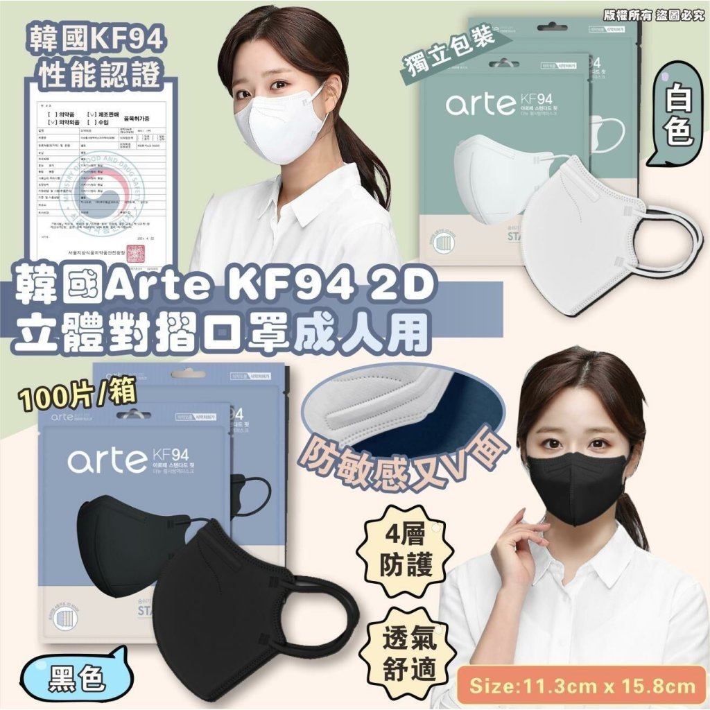 韓國ARTE KF94大人口罩,白色黑色顯瘦口罩‼️ 開團啦📢全港最平🤭
