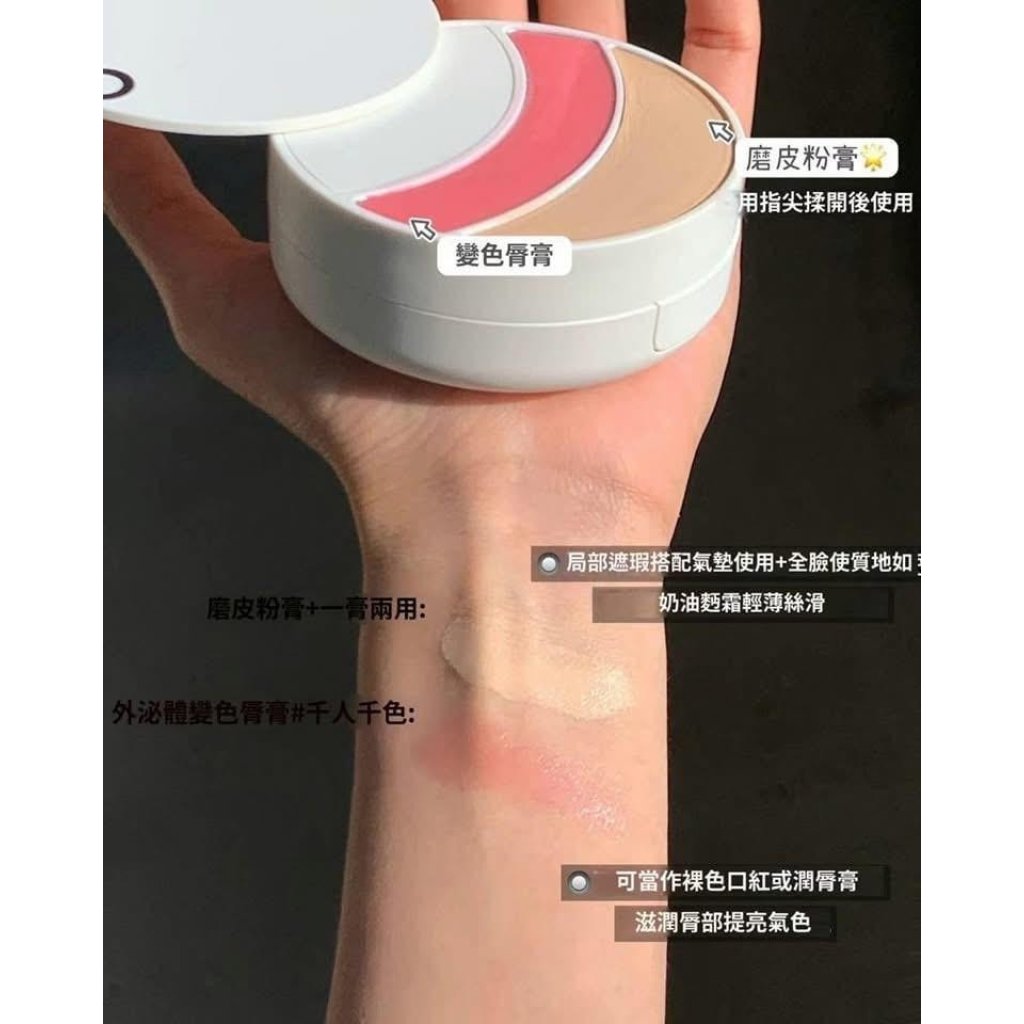 ❣️一膏2用:可以直接當BB霜用:「防水、持妝、高遮瑕」,像奶油面霜一樣輕薄絲滑質地, 隱匿毛孔、填平痘坑,可以當做粉膏全臉使用,也可以局部遮瑕搭配氣墊霜使用。
