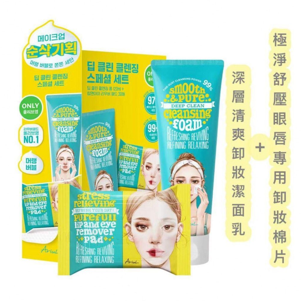 韓國🇰🇷No.1👍🏻~Ariul極淨舒壓眼唇專用卸妝棉片 (30片) + 深層清爽卸妝潔面乳 120ml
